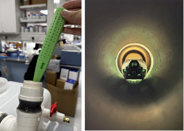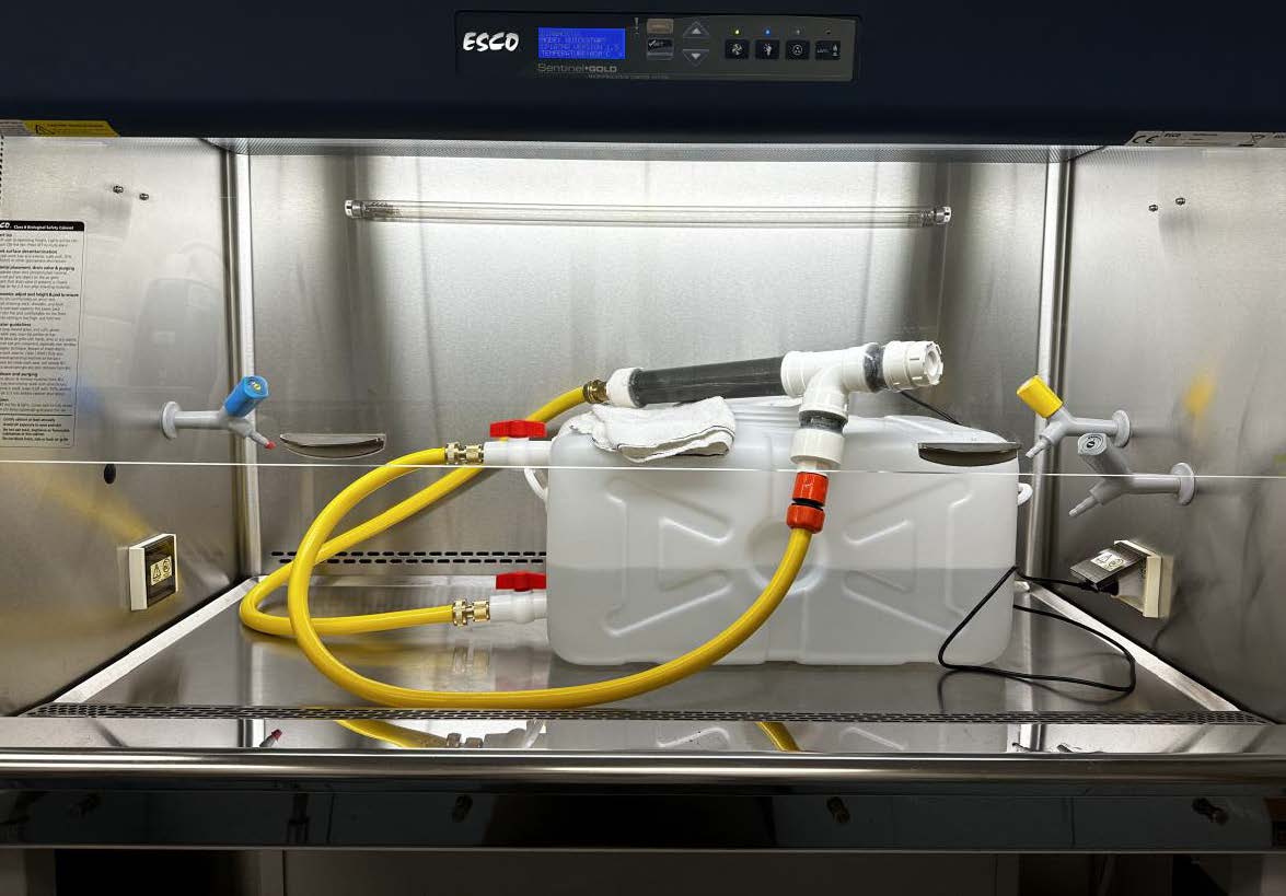 The assembled sewage model in working order, housed in a biological safety cabinet.